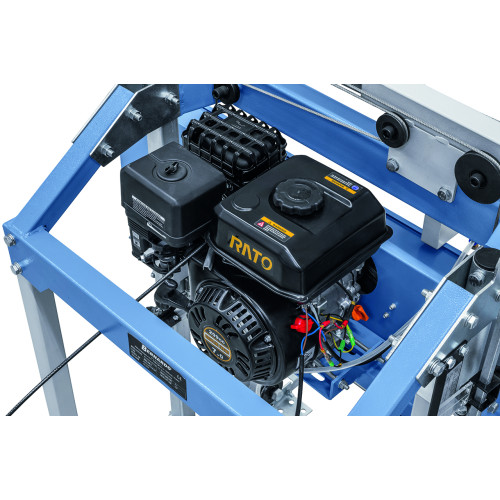 Бензиновият банциг е оборудван с динамично балансирани задвижващи колела от сив чугун, които осигуряват плавна и стабилна работа. Машината е подходяща за обработка и преобразуване на дървени трупи в дъски, талпи и греди, като поддържа рязане както на иглолистна, така и на широколистна дървесина.