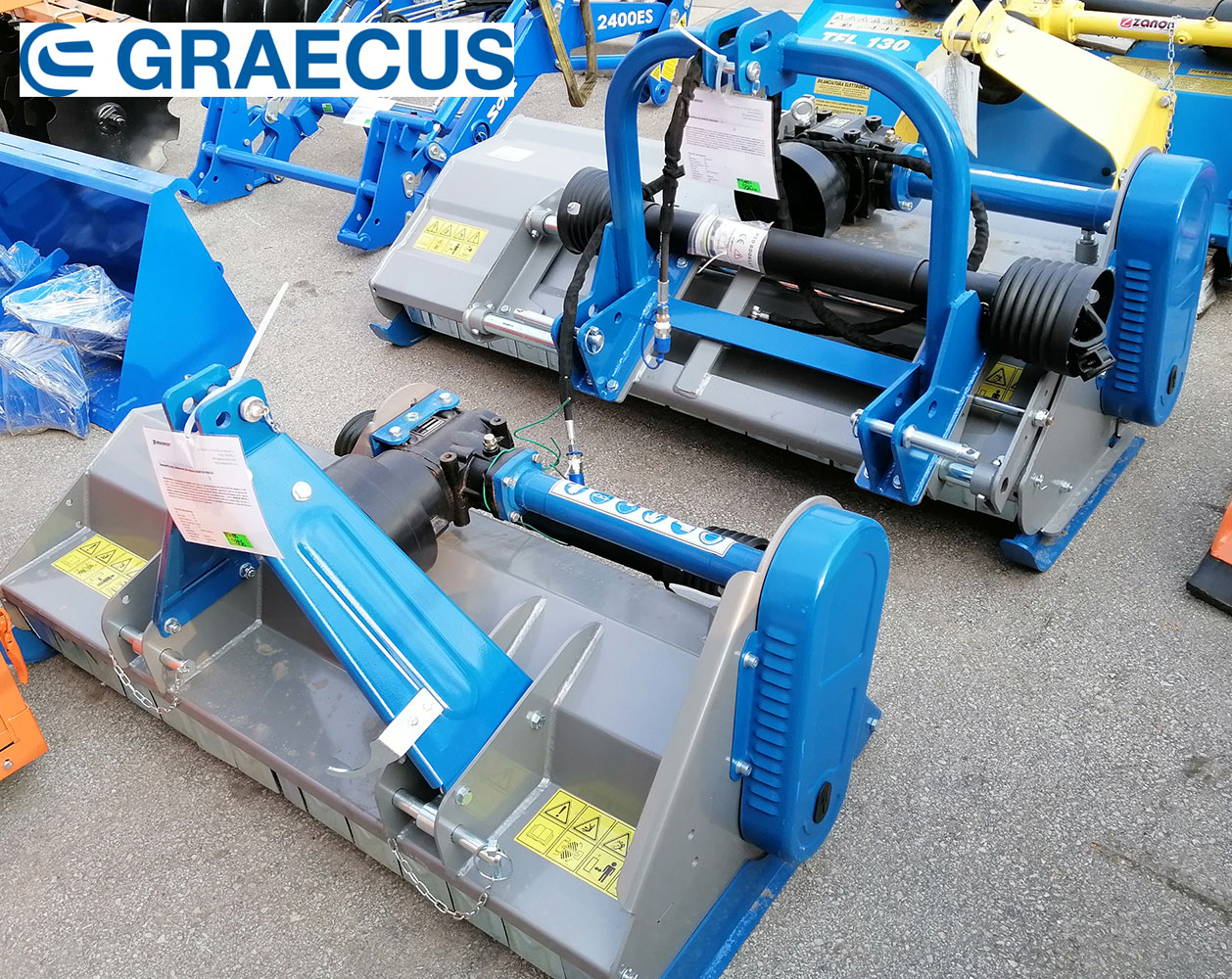 Сред продуктите на GRAECUS можете да откриете косачки, шредери и мулчери, ротационни фрези, гребла, дробилки, дискови брани, плугове, култиватори, продълбочители, посадъчни машини, свредели, почистващ инвентар, торачки, ремаркета и дъмпери, цепачки за дърва и много други.