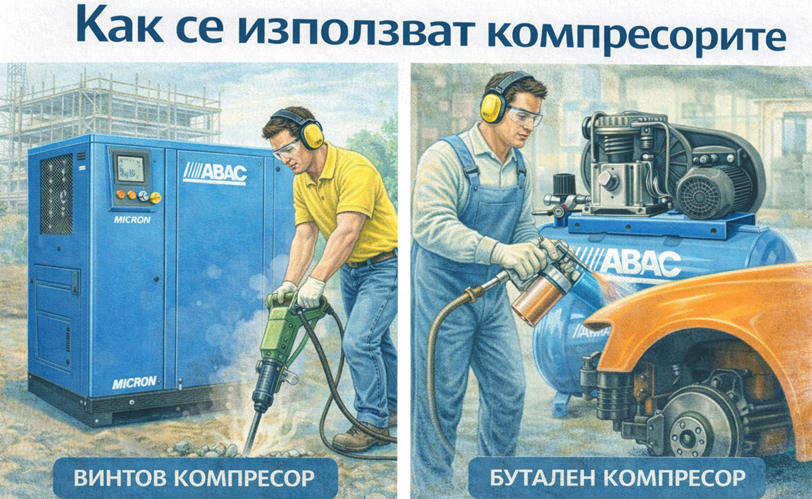Това е и причината буталният компресор да е масов избор за малки гаражи и хоби приложения, а винтовият — за индустриална непрекъсната работа.
