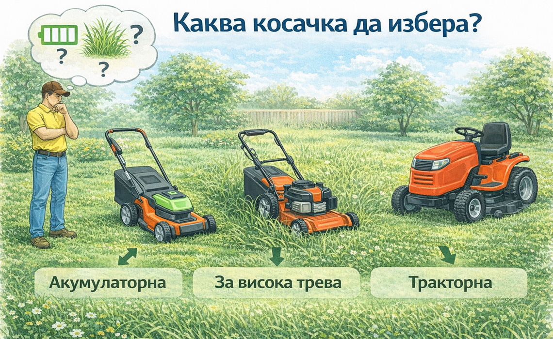 Косачката за трева е незаменим инструмент за поддръжка на градината, но изборът ѝ зависи от редица фактори: размер и характер на двора, тип на тревата, наличие на електрозахранване и пр. В това ръководство разглеждаме основните типове косачки за трева – ръчни (механични), електрически (кабелни), акумулаторни (бездротови), бензинови косачки (моторни), роботизирани и тракторни – и съответните условия, при които се предлагат най-добри резултати.