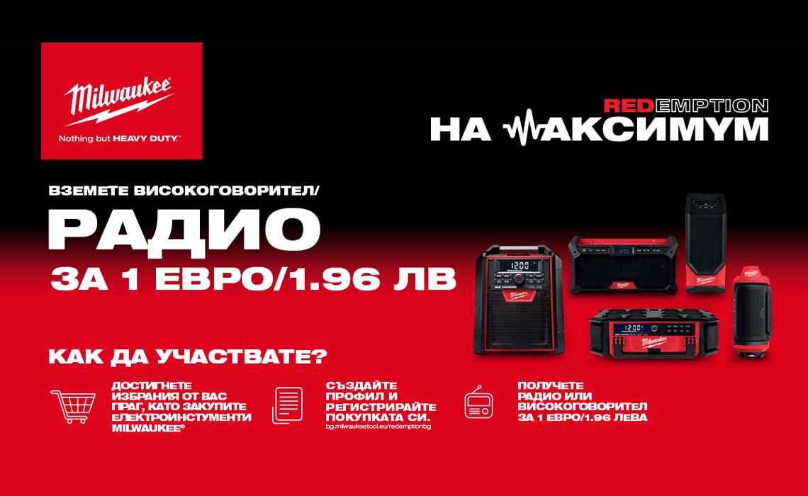 КУПЕТЕ ЕЛЕКТРОИНСТРУМЕНТИ MILWAUKEE И ПОЛУЧЕТЕ ТОНКОЛОНА ИЛИ РАДИО ЗА 1 ЕВРО/1.96 ЛВ с ДДС.