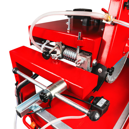 Машината за рязане на строителни материали RAIDER RDP-TMS35 е професионално решение, създадено за работа с керамични плочки, тухли, камък и други твърди материали. Оборудвана е с мощен 2200 W двигател и диамантен диск с диаметър 350 mm, който позволява дълбочина на среза до 90 mm. Работи с водно охлаждане, което осигурява чисто и прецизно рязане с минимално отделяне на прах. Плъзгащият плот и ергономичните ръкохватки улесняват управлението и дават пълен контрол по време на работа. Машината позволява рязане под ъгъл от 0° до 45°, което я прави отличен избор за оформяне на фуги, ъгли и декоративни елементи при подреждане на плочки.